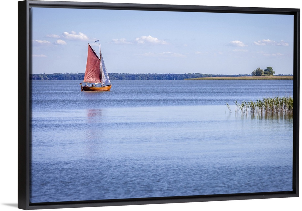 <p>Zeesen boat on the bay near Althagen, Mecklenburg-Western Pomerania, Northern Germany, Germany</p>