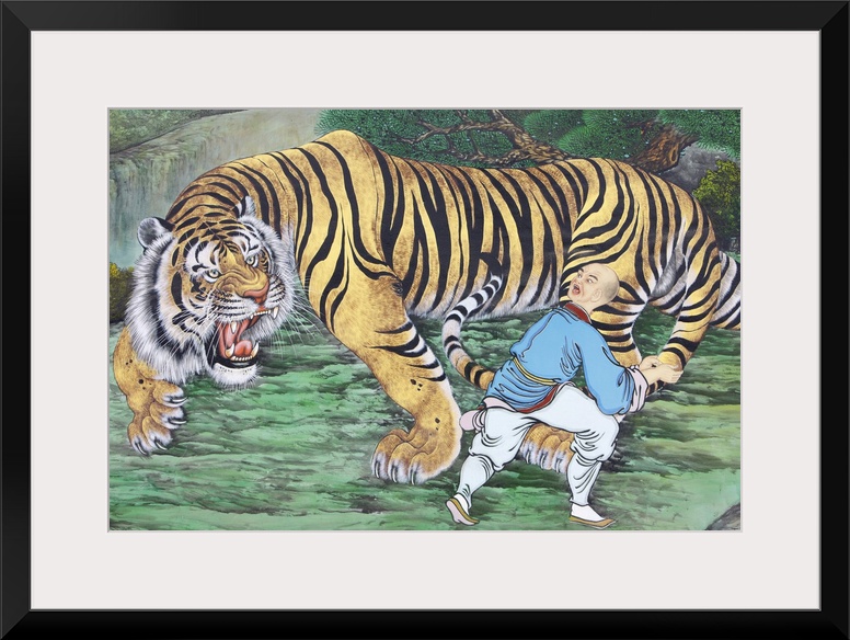 <p>Zen koan painting depicting monk and tiger, Seoul, South Korea, Asia.</p>