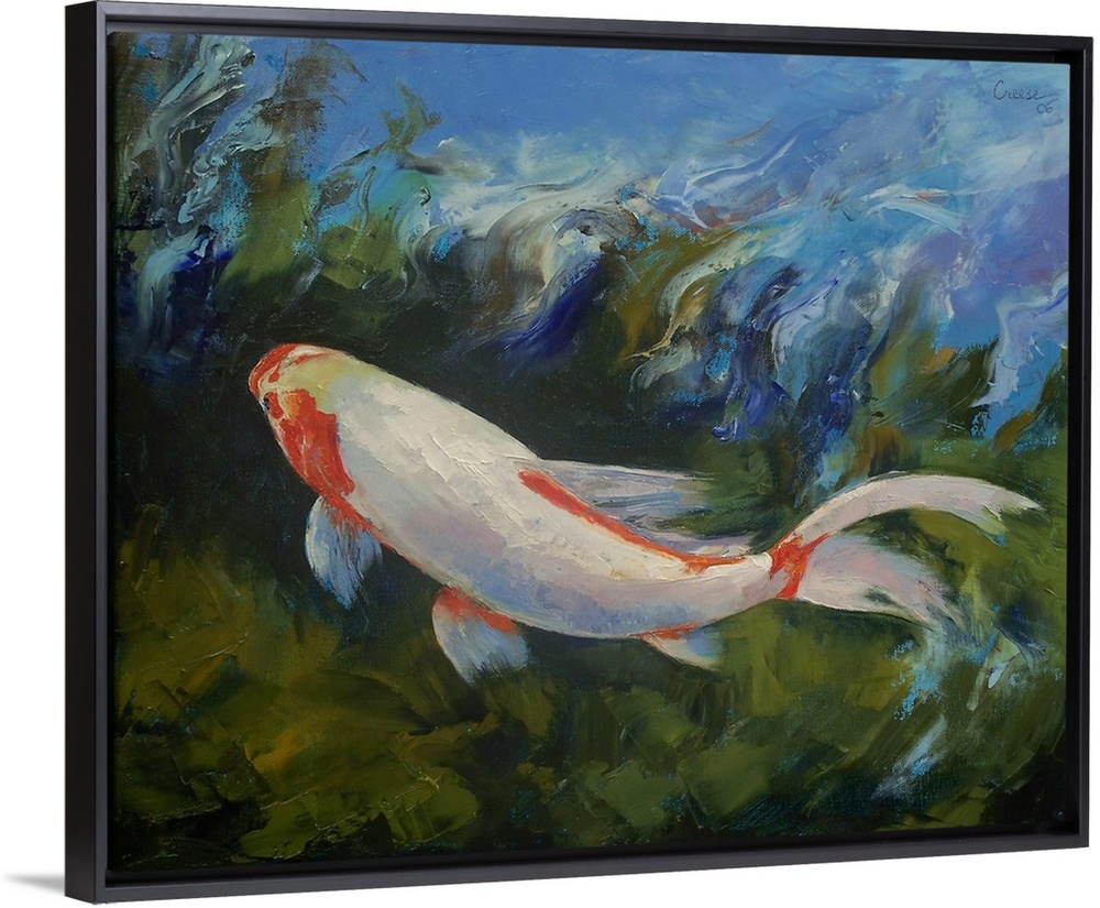 <p>Oil painting on canvas of a koi fish swimming in water.</p>