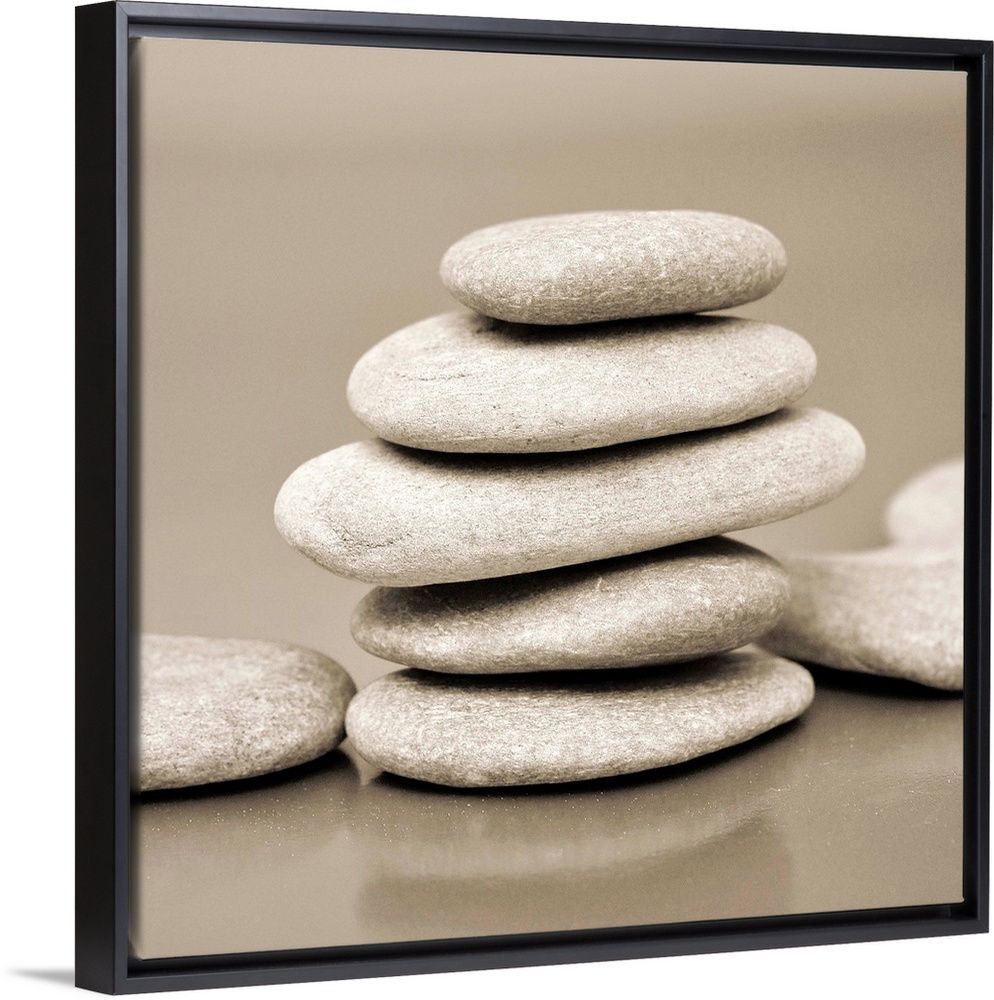 <p>Square monotone image of a stack on smooth rocks.</p>