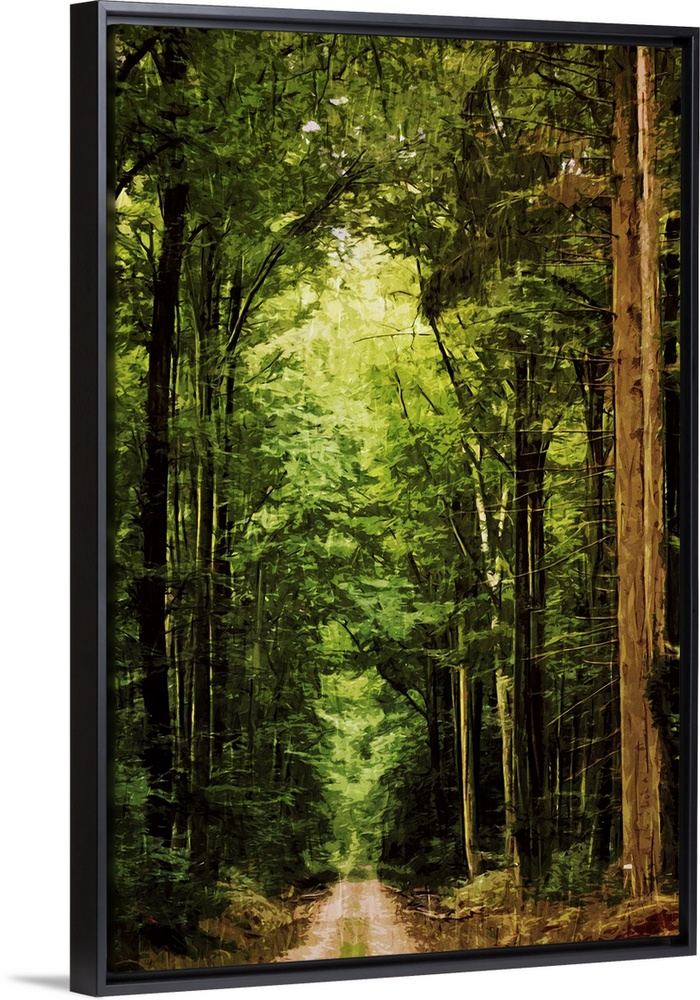 <p>Fine art photo of a path through a forest of very tall trees.</p>