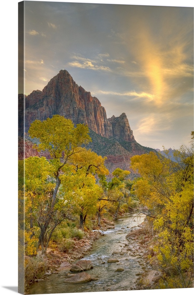 <p>Autumn along the Virgin River, The Watchman in the distance, Zion National Park Utah USA</p>