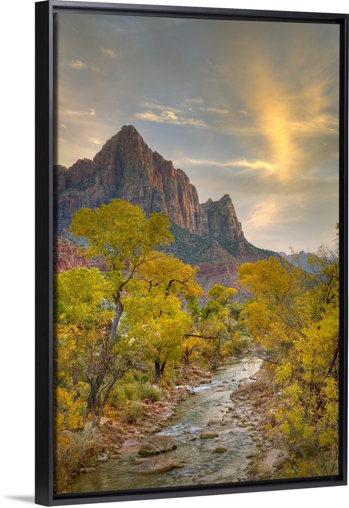 <p>Autumn along the Virgin River, The Watchman in the distance, Zion National Park Utah USA</p>