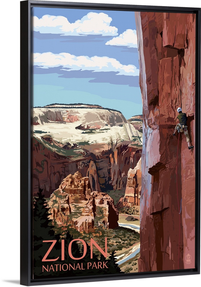 Art Landscapes Cliff Lantern Press Utah Zion National Park Climbing Travel Posters Retro Travel Posters