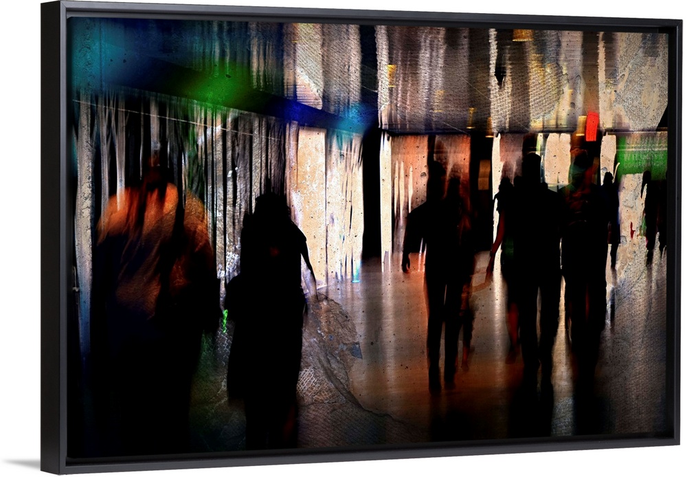 <p>Artistic photograph of silhouetted figures walking.</p>