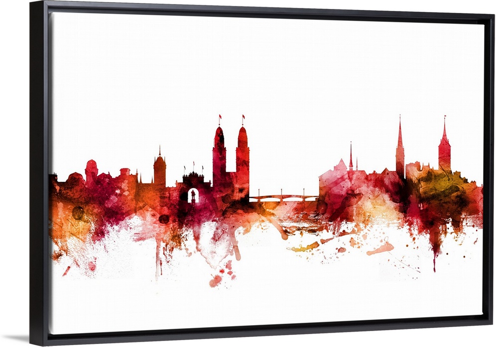 <p>Watercolor art print of the skyline of Zurich, Switzerland in warm tones.</p>