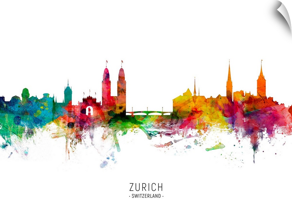 <p>Watercolor art print of the skyline of Zurich, Switzerland.</p>